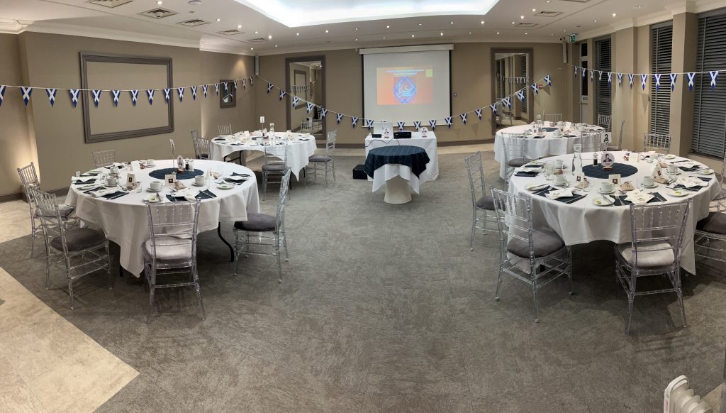 Bailgate Rotary Club celebrated Burns night in the traditional way. Bob Brown one of our Friends of Bailgate, paraded the Haggis around the room to the sound of ‘Scotland the Brave’. He then addressed the Haggis in a distinct Glaswegian accent before offering a toast to the Haggis. After the traditional Burns night fayre more entertainment followed, with Bob Brown giving a fine redition of ‘A Lammas Night’ with more traditional Burns poems and songs entertaining members and their guests for the rest of the evening culminationg in a rousing version of ‘Auld Lang Syne’.